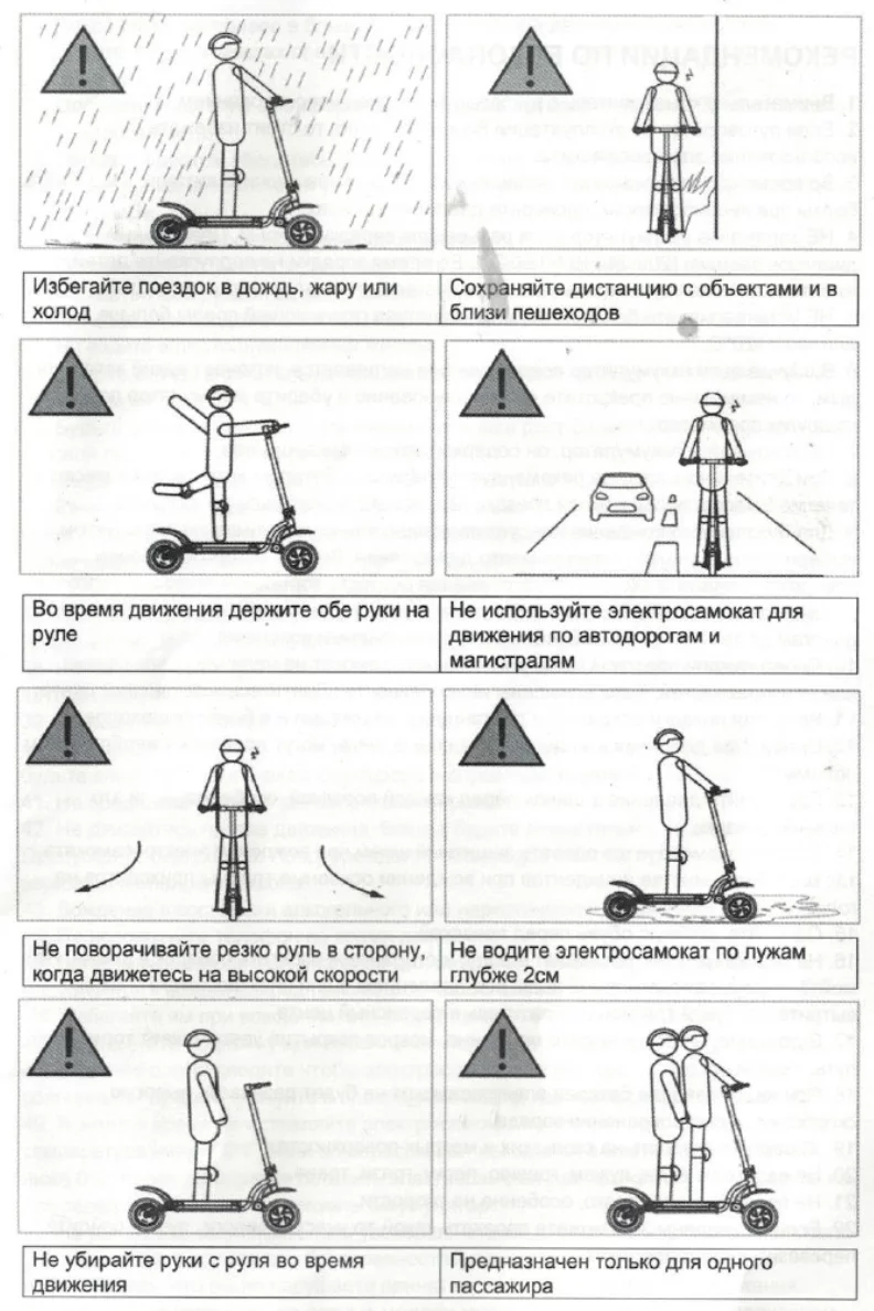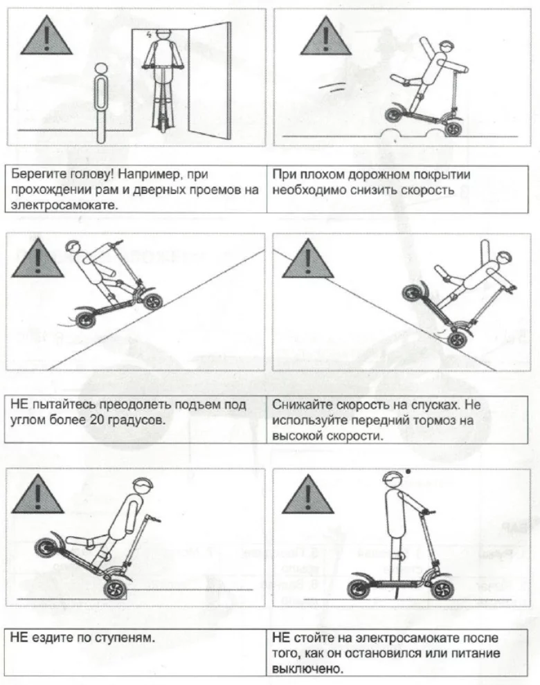 1. Перед использованием внимательно ознакомитесь с руководством пользователя, если руководство пользователя вам непонятно, то не используйте электросамокат, не передавайте в пользование электросамокат другим лицам, если они не знают, как использовать его.