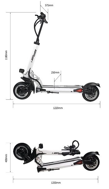 - Несмотря на внушительные технические характеристики Speedway 5 имеет небольшие размеры. Чтобы было удобно хранить и перевозить изделие, его можно сложить. Рулевая стойка притягивается к деке и фиксируется в таком положении.
